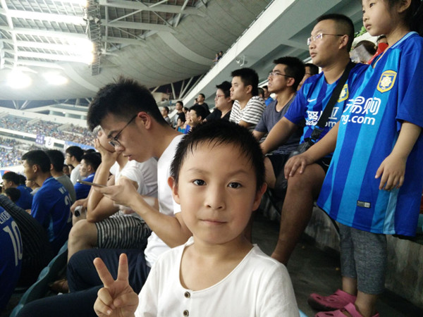 爸爸早就答应带我去球场看球了,不过由于最近太热了,一直没有去的成。上个周末,我们一家终于可以去南京看球了。