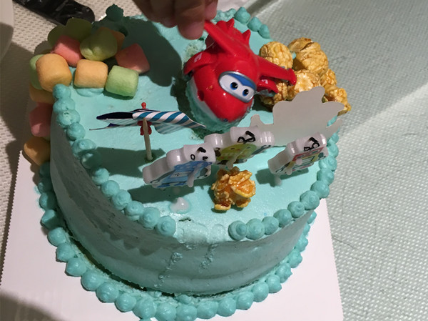 大家还记得我去年的生日蛋糕嘛?是一辆汽车形状的蛋糕,好多人都记得呢。我今天的生日蛋糕也是定制的呢,上面可是我最喜欢的卡通形象——乐迪,因为最近我一直在看动画片《超级飞侠》。