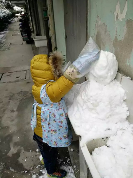 一大早我就和妈妈下楼去搜集雪了,这次雪还真大,我们很快就搜集到了很多的雪。然后我们就一起开始堆雪人了。虽然雪很冷,但一点也阻挡不了我堆雪人的热情。