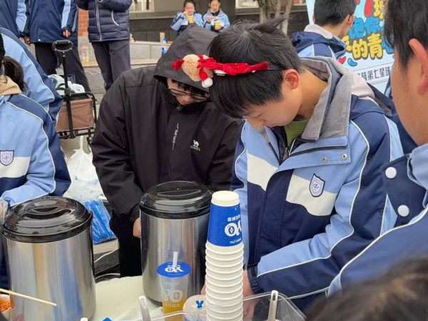 2025年的最后一天,我们学校举行了嘉年华活动,其实说白了就是大型展销会,每个班都有自己的摊点。我们班卖的是奶茶,而我分配到的就是和其他同学一起制作奶茶并进行销售。当然了,原材料都是现成的,我们只需要把它们混在一起装进杯子里就行,这对我来说小菜一碟,毕竟平时也喝过不少奶茶了。