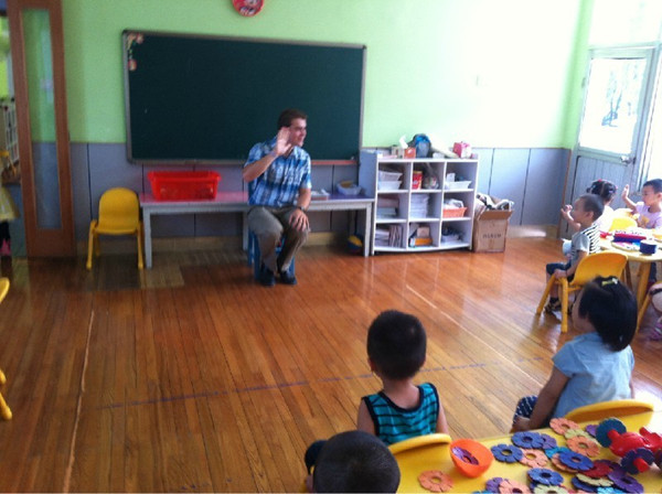 开学已经有好几天了,我也渐渐的适应了幼儿园的集体生活了。不仅能按照老师的要求去做了,也能和其他的小朋友很好的相处。星期三是有外教的课程的,今天我们班上来了一个外国的老师给我们上课,我发现他长的和我们不一样啊,尤其是头发和眼睛的颜色,这还是我第一次看到真实的外国人呢。虽然他说的话我一句也听不懂,但我们在一起上课还是非常开心的。
