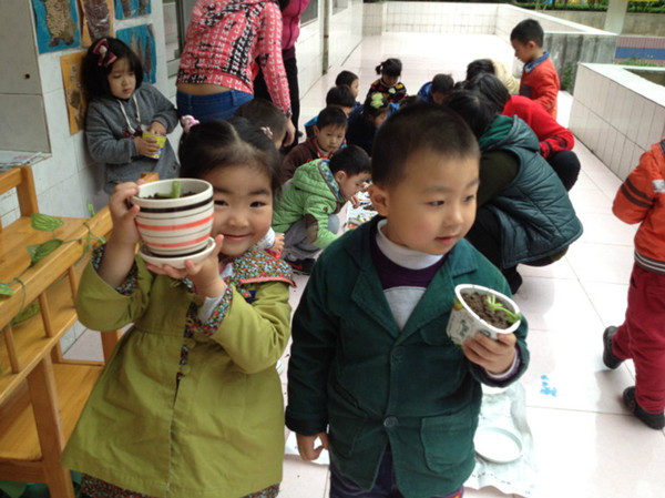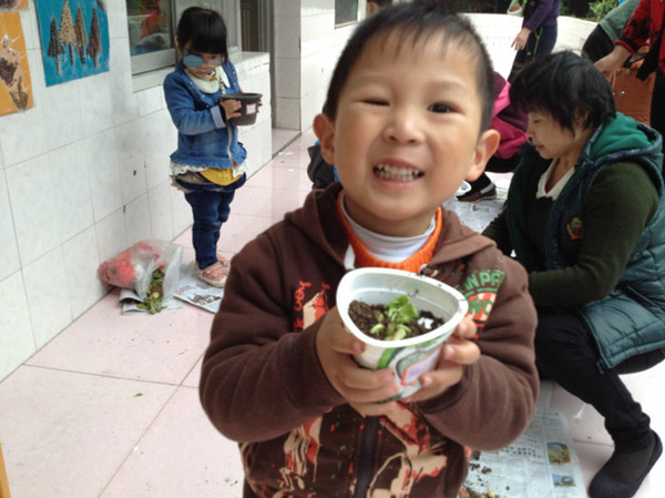 前两天,老师让我们每人带一个花盆到幼儿园,我还有点纳闷呢。原来是为了今天准备的,因为今天我们要一起种杨花萝卜。