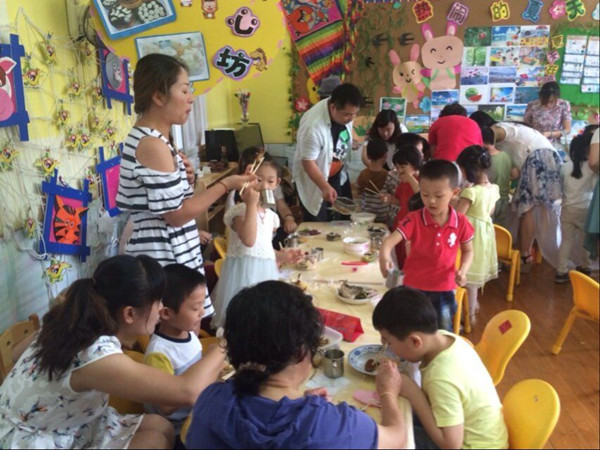 所有的小朋友都介绍完自己的菜后,这次餐会活动的重头戏来了——大家一起分享我们的菜,那么多道菜一起吃,实在是太丰盛了。