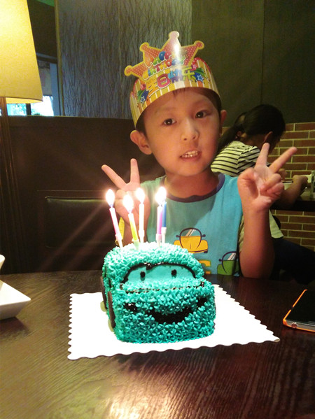 按照惯例,我们全家要到饭店里吃一顿来为我庆祝生日的,不过今年有点特别,因为我点名要做一个汽车形状的蛋糕,虽然有点难度,不过,我这个小寿星的愿望还是得到了满足。