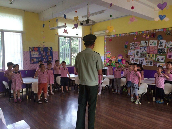 今天,武警叔叔也到我们幼儿园来了,还教我们如何敬礼呢。
