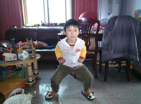 今年,我们班表演的节目是武术,为了能够更好的表演,我们早早的就开始排练了。由于大家都没有武术基础,因此我们就从最基本的蹲马步开始了,看我,有模有样吧。