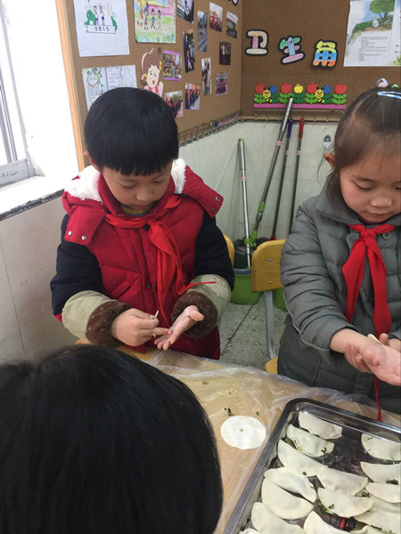 班队课一开始,大家就立刻动起手来,虽然这是我们第一次包饺子,但我们学得还是非常认真的,没过多久,我们就已经学会了如何去包饺子了,看,我们一个个的包的可仔细了。