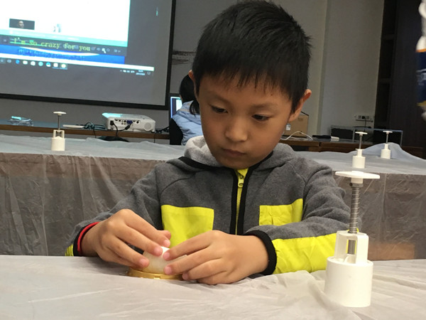 第三站是3D打印馆,我看见了3D打印的书签和饼,工作人员还向我们宣传了3D体验课程。