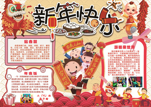 其中一个是春节小报,春节我也过了好几次了,相关的习俗也很清楚了,但今年我却更喜欢放鞭炮了,看来,我的胆也渐渐的长大了。