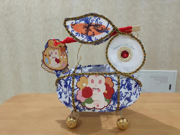 由于是兔年,那理所当然就是买兔子灯了。买回来之后,我感觉挺满意的,好像也没有什么需要我动手的了,我打算就这么交了糊弄差事了。但是妈妈不同意,那好吧,就“改装”吧。首先是分工,我负责动嘴,妈妈负责动手,然后,就没有然后了,哈哈,我去看电视了。很快,妈妈就弄好了,别说,比我想的方案还要好呢。