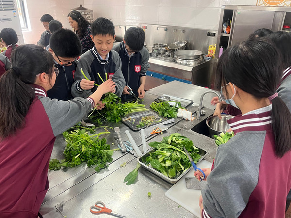大家对这样的课程可感兴趣了,一个个忙的不亦乐乎。首先是制作馅心,第一步就是择菜。