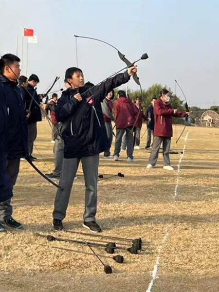 下午的实践课程可有趣了,是练习射箭。我们每个人都射了好多支箭呢,以至于到最后胳膊都酸了。唯一的遗憾是没有什么实际的目标给我们射的,如果能打一些野味,晚上拿来烧烤也是不错的。