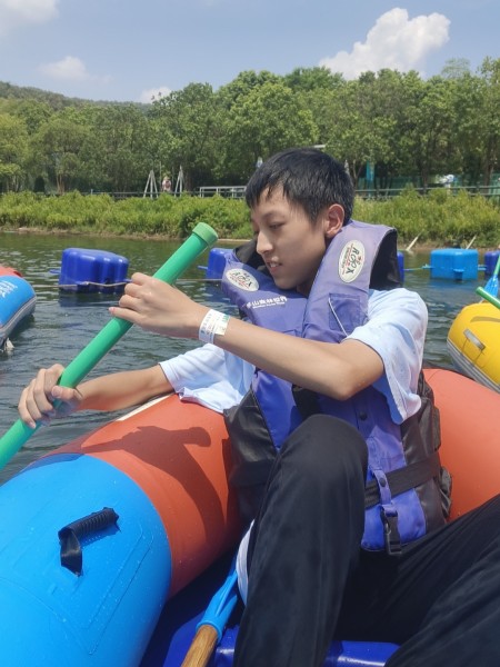 接着,我们本打算去“青青大草原”滑草,不过小火车司机告诉我们,如果下午漂流的话,需要排很长时间的队,于是我们就先去漂流了。漂流是我们这次出游的重头戏,大家的兴致可高了。虽然差不多排了一个小时队,但等轮到我们开始漂流的时候,我们依然非常的高兴。这里的漂流还是有点刺激的,特别是在下坡的时候,每次都能溅起好大的水花,以至于最后结束的时候,我们的漂流船里,已经满是水了。