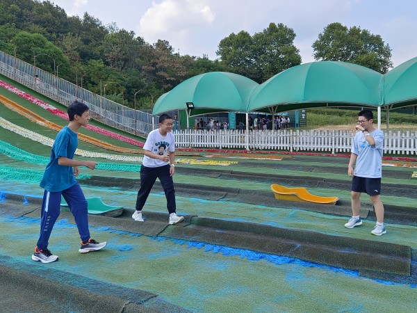 吃过中饭之后,我们再次来到了“青青大草原”。滑草也是必不可少的项目,虽然爬上去确实蛮累人的,但从高台上滑下来的感觉也是蛮舒服的,不过我觉得,这个滑草不如我之前在三亚的速度快。
